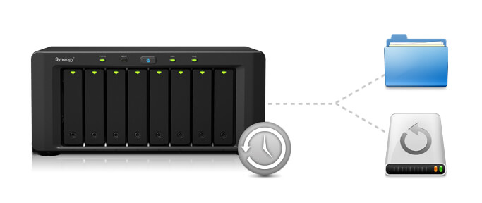 - Backup dữ liệu đến 1 phân vùng khác hoặc ra 1 HDD gắn ngoài Synology thông qua cổng USB/eSATA.