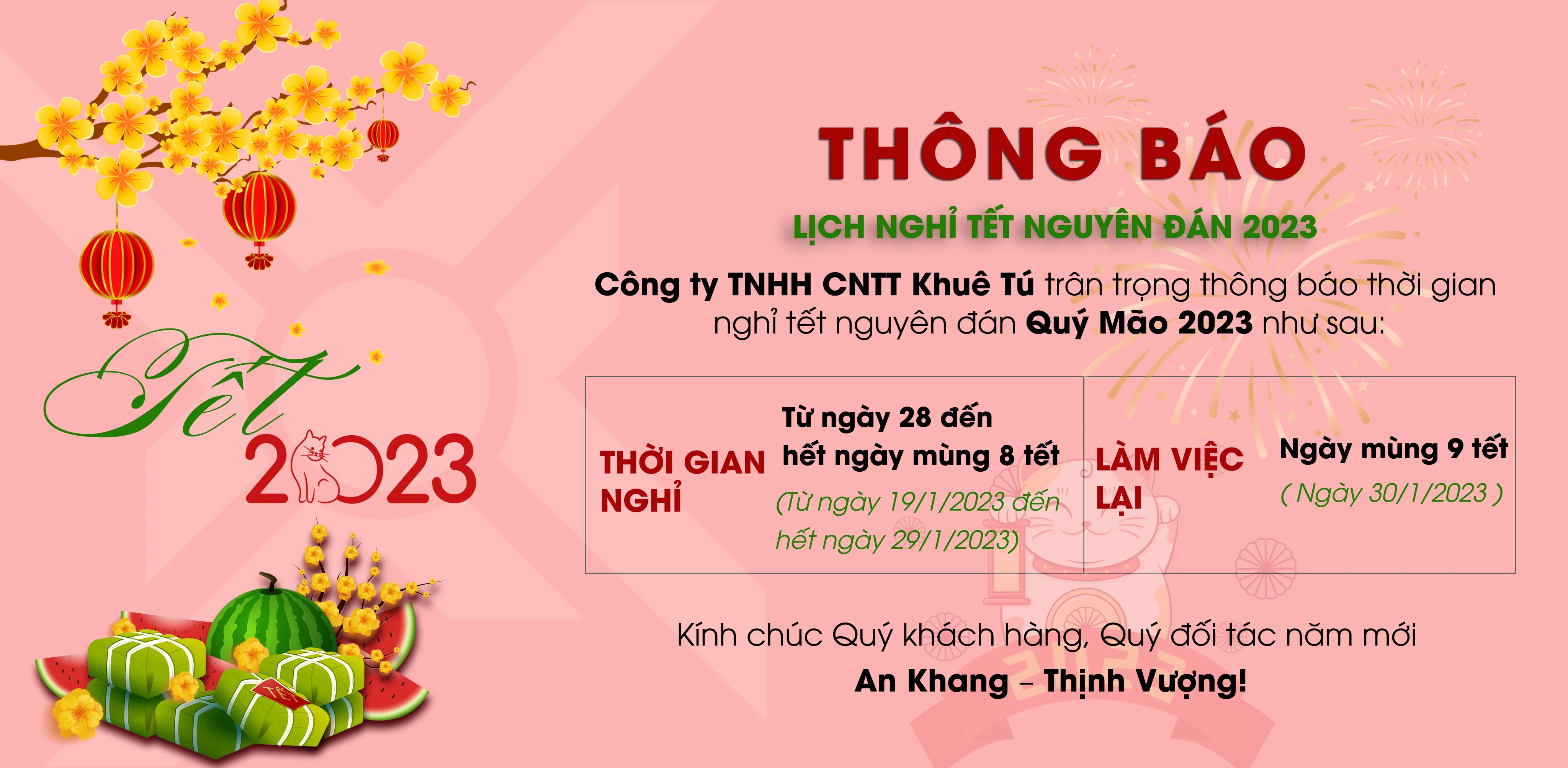 KHUÊ TÚ thông báo lịch nghỉ TẾT Quý Mão 2023