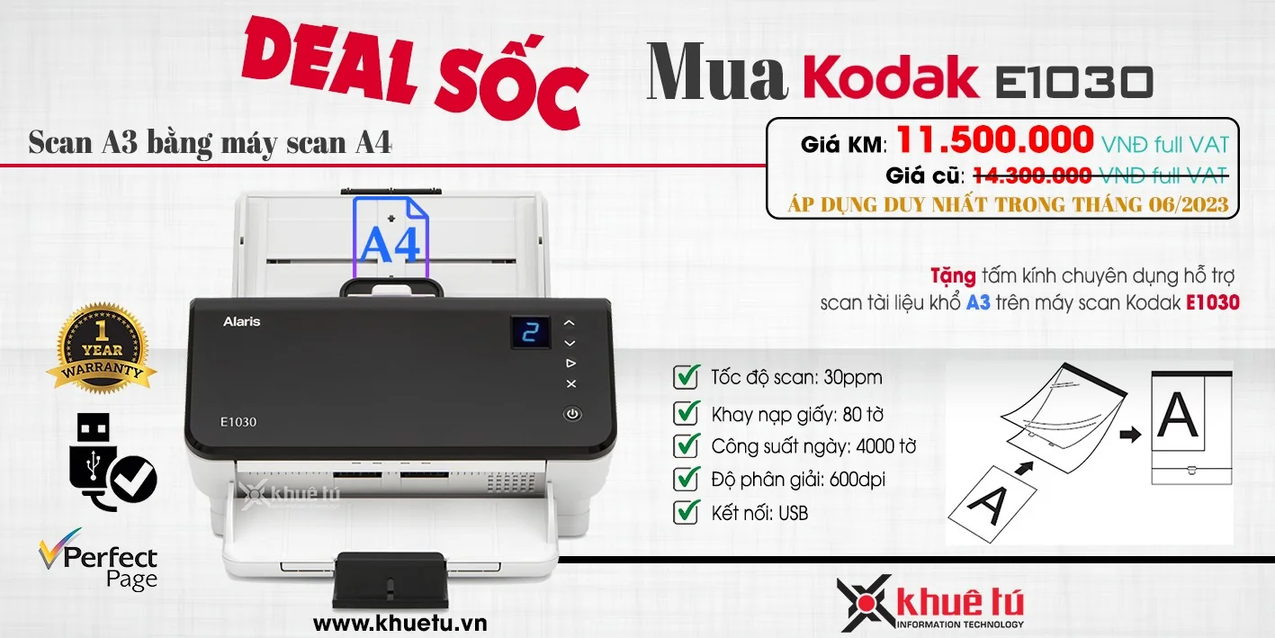 (Khuyến mãi) Combo Kodak E1030: máy scan A4 scan được tài liệu A3 chỉ 11.500.000