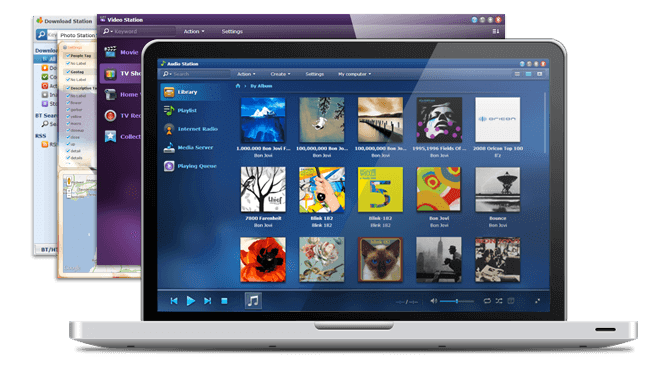 Giả trí dễ dàng với Audio Station và Video Station. Tìm phim và chương trình truyền hình trực tuyến hoặc ghi lại chương trình yêu thích của bạn với DVB-T, và chơi chúng trên tất cả các thiết bị bao gồm cả Windows, Mac, DLNA, AirPlay, Bluetooth, iOS, Android và Windows Phone.