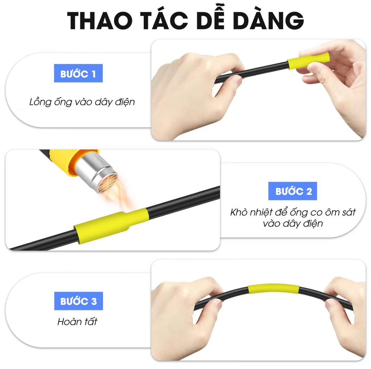 - Công dụng: Bọc và giữ chắc dây đồng, thanh cái, các mối nối, mối hàn trong hệ thống điện. Cách điện và bảo vệ tránh các tác nhân như khói bụi, hóa chất, độ ẩm hoặc ăn mòn.