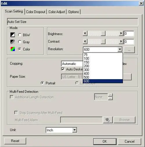 Bạn có thể cấu hình các chế độ quét màu, sắc xám hay đen trắng; chọn khổ giấy và độ phân giải quang học tối đa lên đến 600dpi.