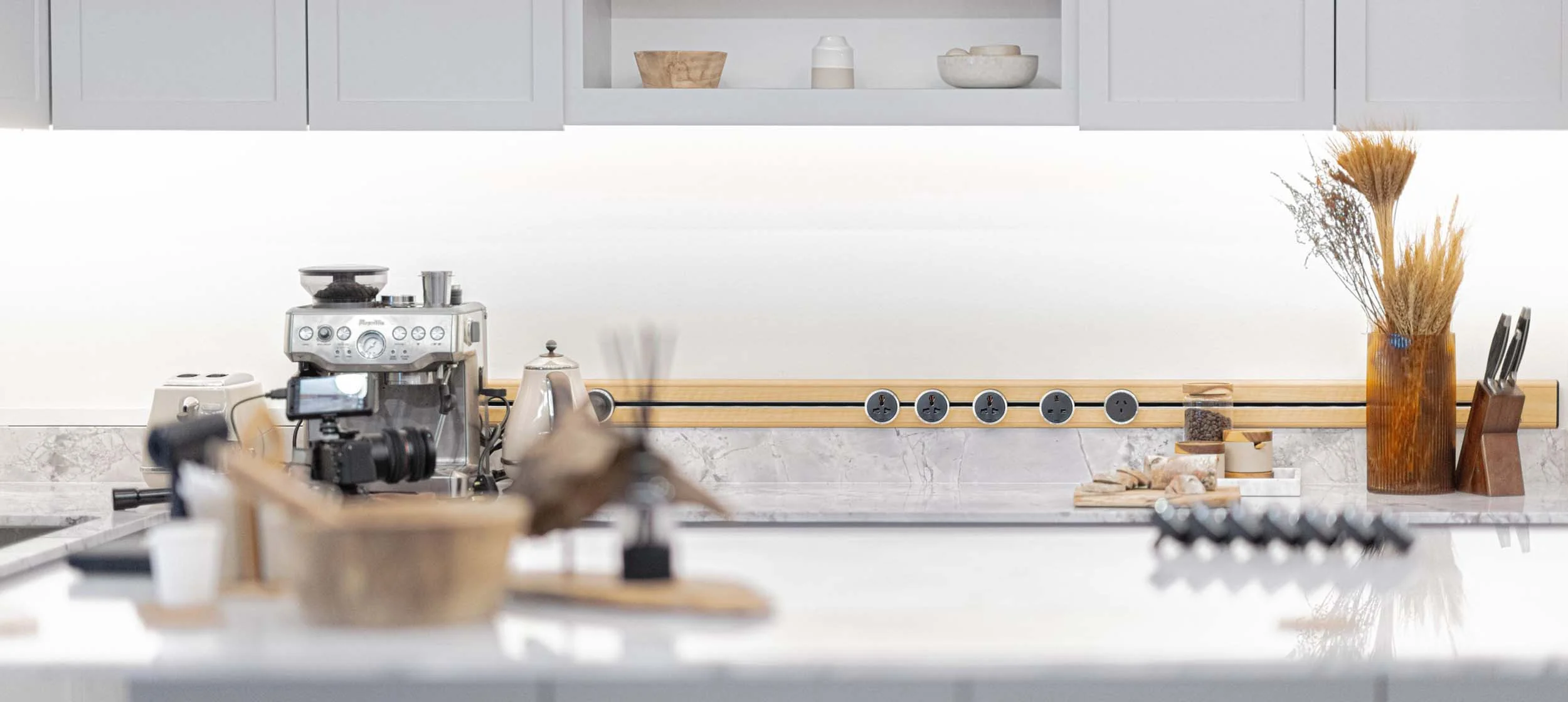 Tùy thuộc vào chiều dài thanh ray mà số lượng ổ cắm có thể gắn sẽ khác nhau. Tuy nhiên, để dễ hình dung thì với thanh ray Line8 chiều dài 600mm sẽ gắn được 8 ổ cắm; thanh ray chiều dài 800mm gắn được 11 ổ cắm và thanh ray dài 1000mm gắn được 14 ổ cắm.