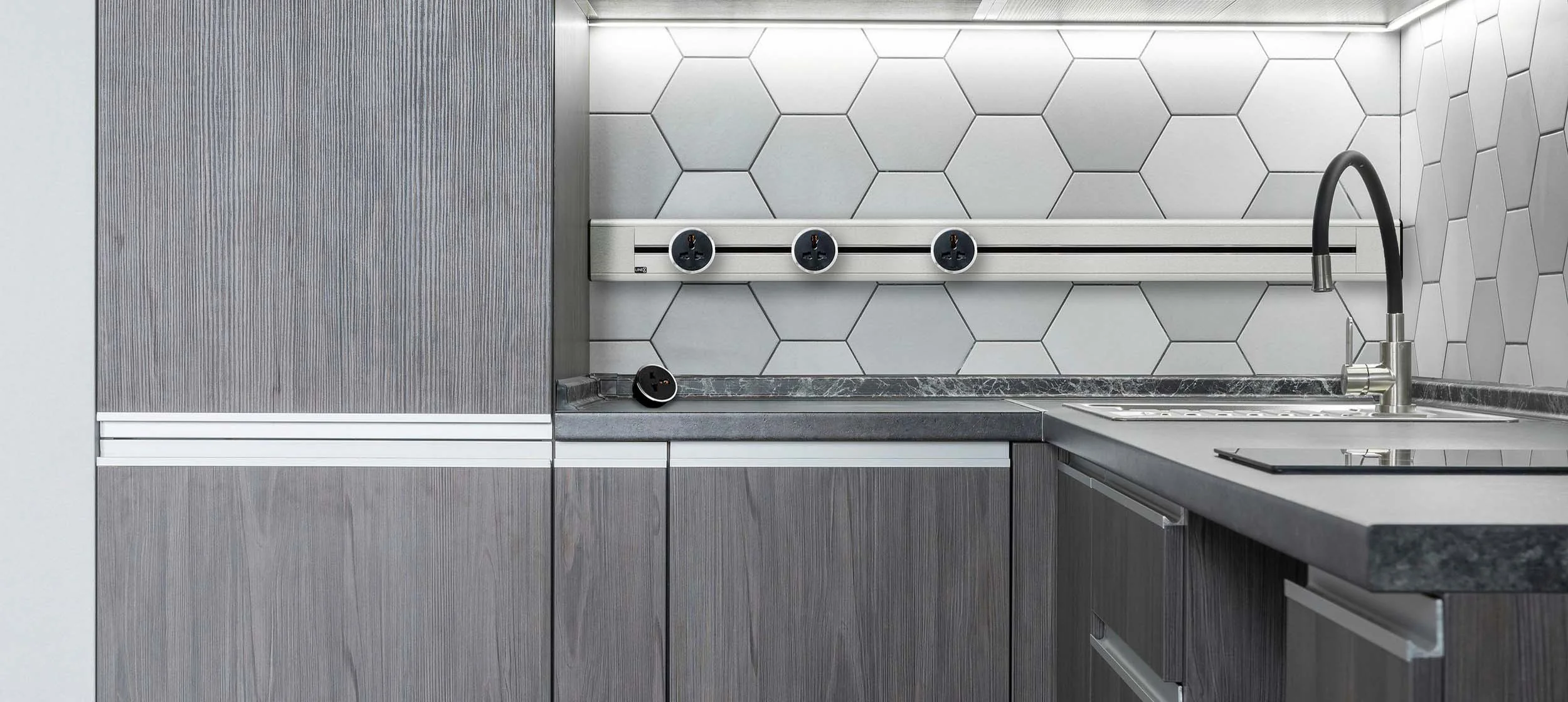 Line8 được thiết kế với Thanh ray như một "ổ khóa", còn Ổ cắm như một "chìa khóa". Chỉ khi đúng chìa khóa (ổ cắm) được tra vào ổ khóa (thanh ray) và vặn đúng (xoay đúng chiều ổ cắm) thì mới làm cho đường ray có điện. Qua bước này, thực tế trên ổ cắm vẫn chưa có điện, bạn phải kéo công tắc vòng trên ổ cắm để mở điện & sử dụng => 02 lớp bảo vệ an toàn