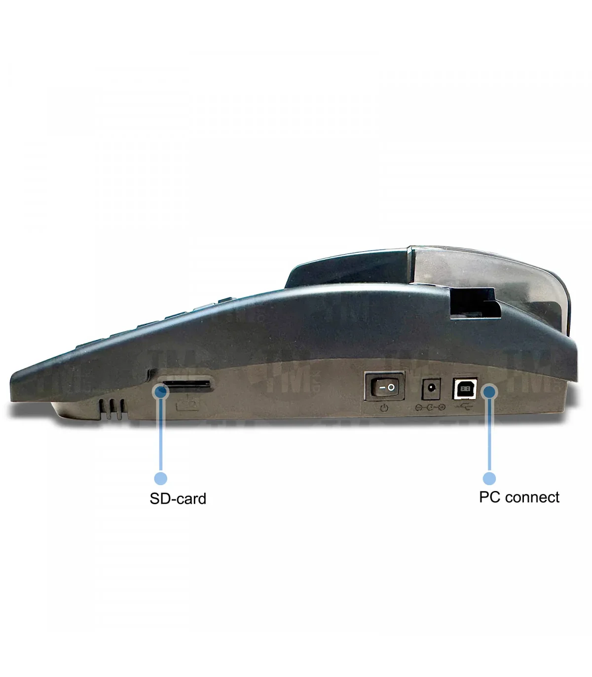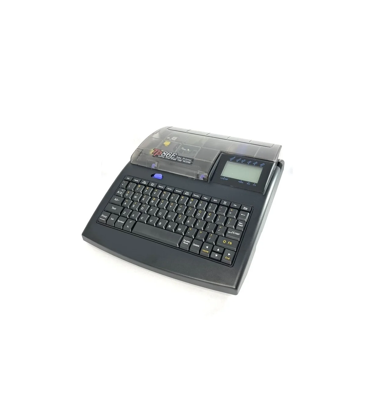 Màn hình LCD trắng nền lớn, hiển thị hai dòng – dễ đọc và thao tác trực tiếp trên máy. Bàn phím tiêu chuẩn 78 phím giúp nhập liệu nhanh, hỗ trợ ký tự đa ngôn ngữ (16 hệ ngôn ngữ) và các ký tự đặc biệt như dấu quốc gia, ký hiệu đồ họa