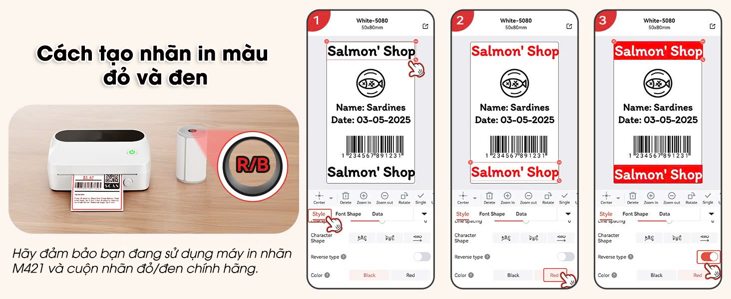 Các nhãn nhiệt màu đỏ và đen này hiện chỉ có sẵn cho máy in nhãn M421. Xin lưu ý rằng nếu bạn sử dụng máy in nhãn M110, M220, M200 và các máy in nhãn khác, bạn chỉ có thể in màu đen, không thể in màu đỏ!