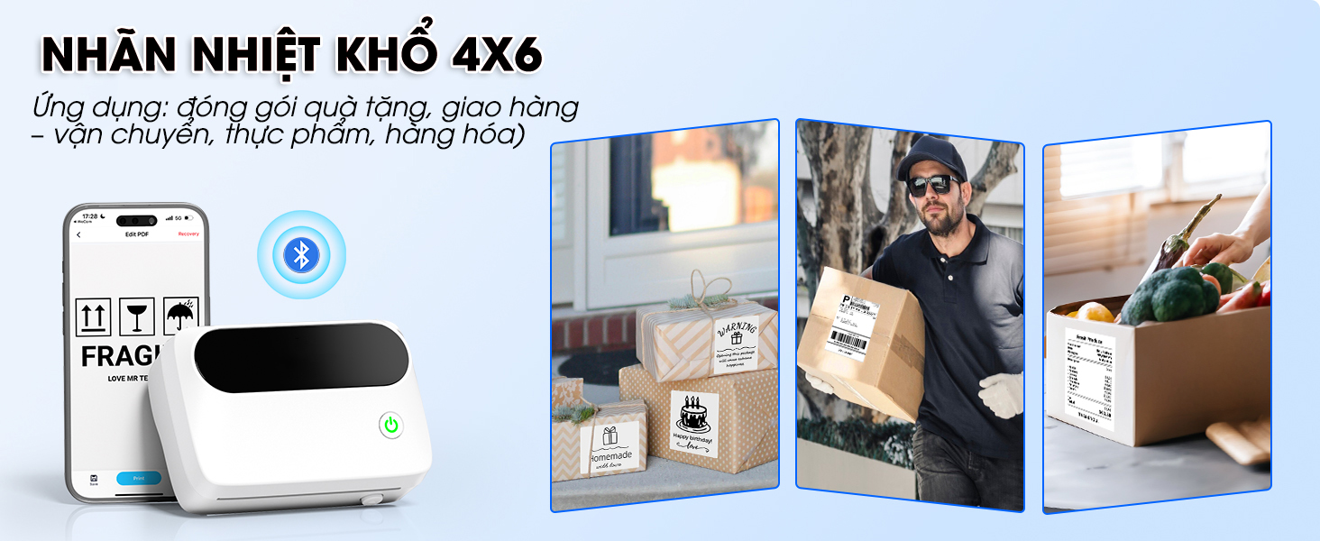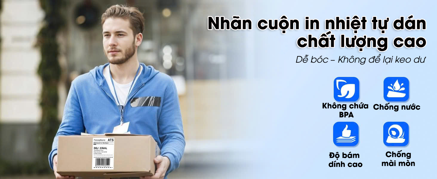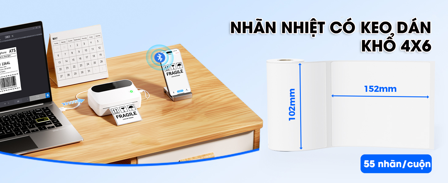 ✅ Giấy có độ bám dính cao: In xong bóc ra dán ngay, dán được trên nhiều bề mặt: túi nilon, thùng carton, thủy tinh, nhựa,......