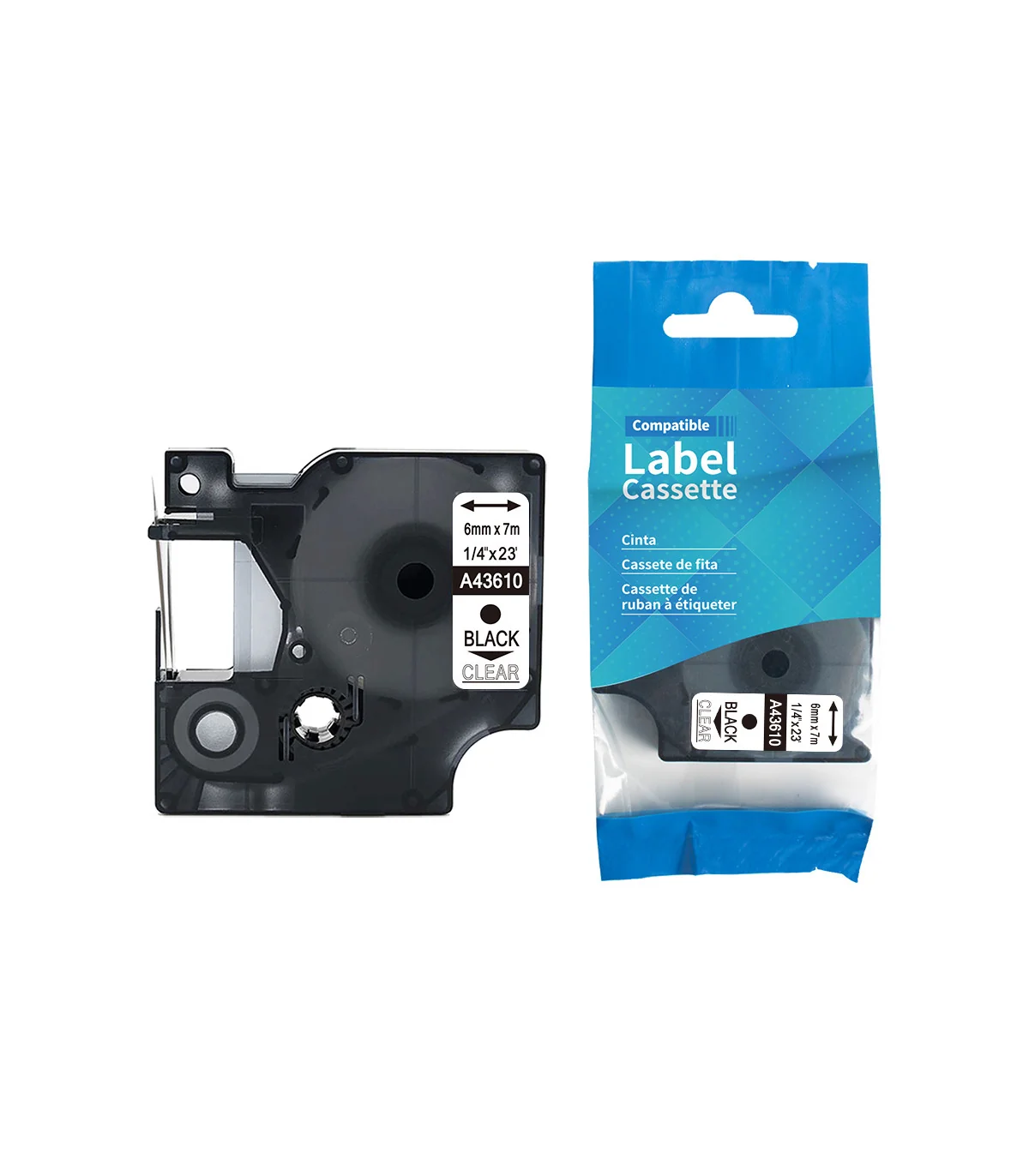 DM-A43610 D1 Tape 43610 6mm x 7m Black on Clear