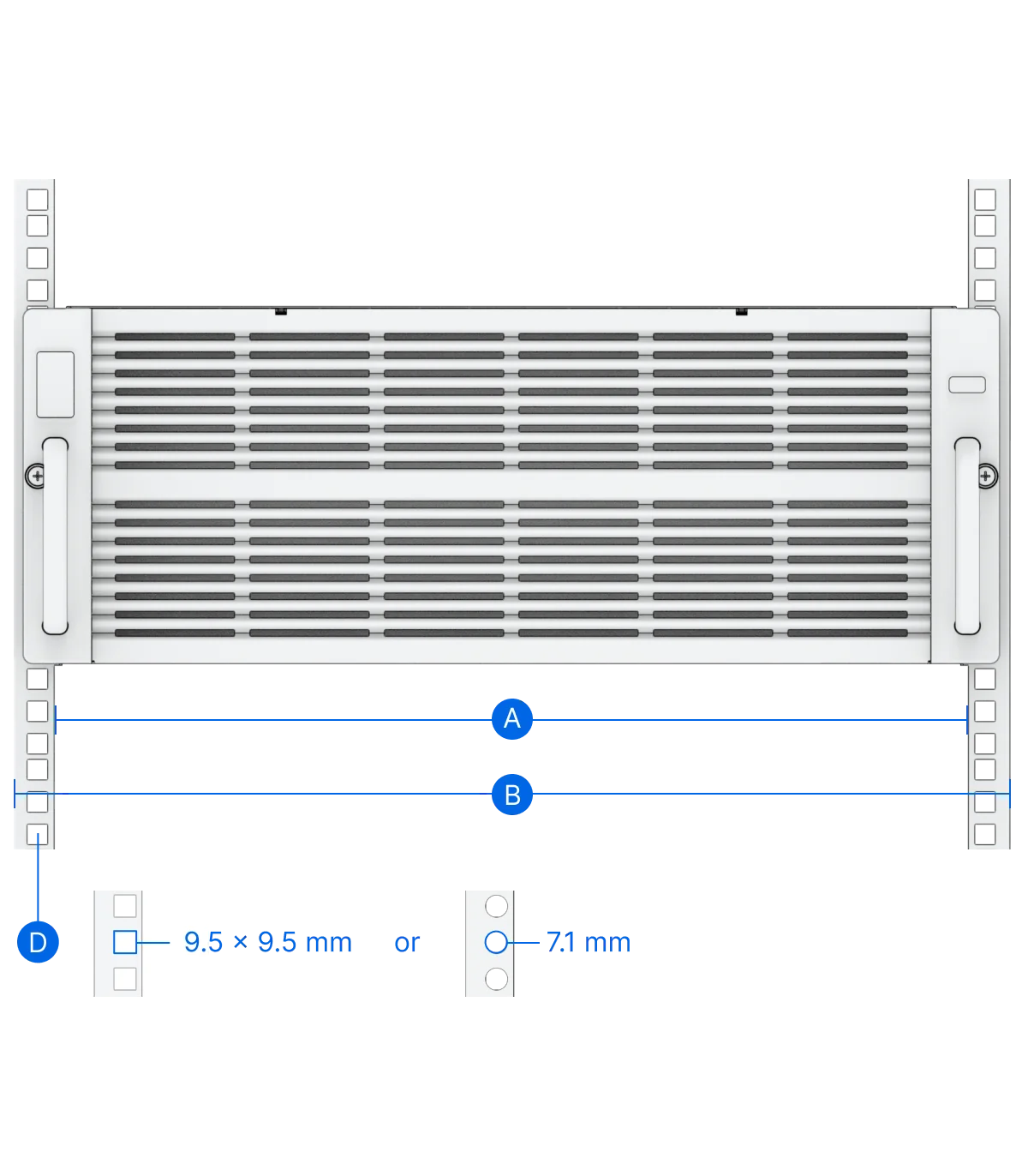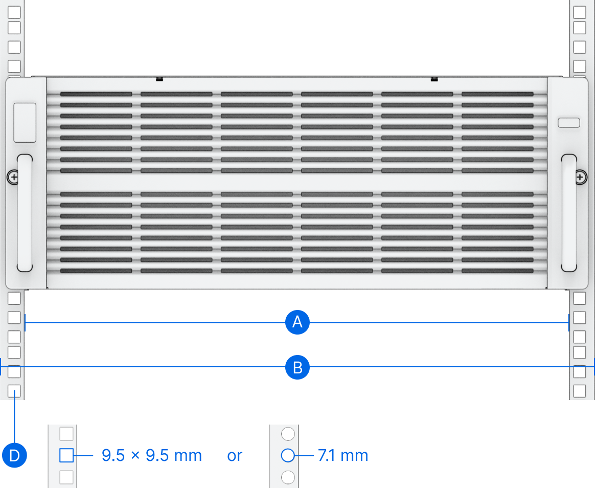 - Hỗ trợ lỗ gắn giá đỡ: lỗ vuông: tối thiểu 9.5 mm x 9.5 mm; lỗ tròn: tối thiểu 7.1 mm