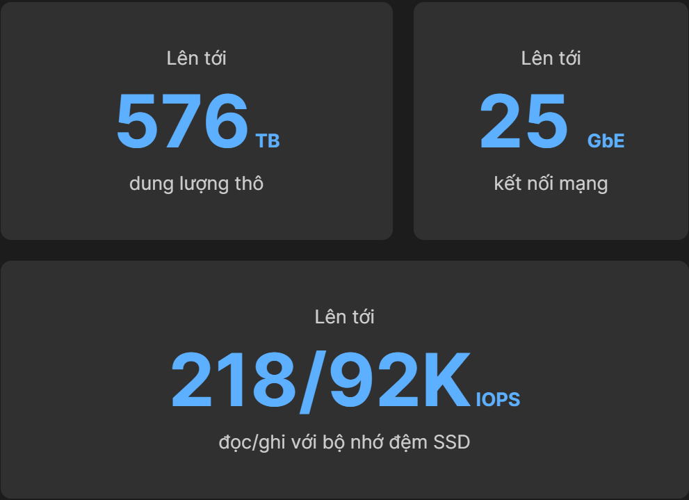 Linh hoạt thay đổi quy mô dung lượng lưu trữ, tối ưu hóa hiệu suất I/O và đáp ứng các nhu cầu mạng khác nhau với nhiều tùy chọn mở rộng.